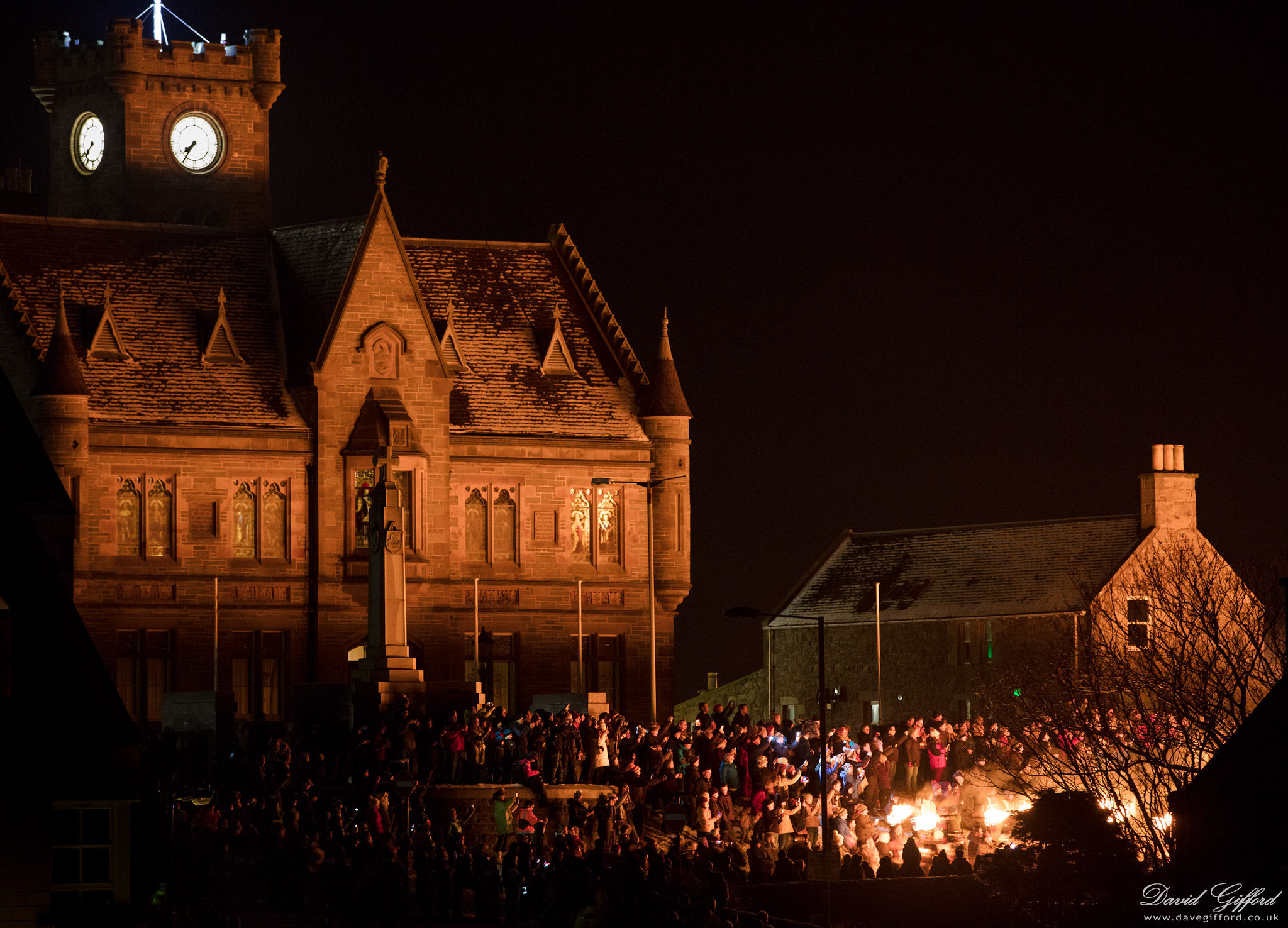 7.35pm Up Helly Aa 2019 Lerwick Town Hall and excited spectators lit-up by the approaching procession of Guizers.Posted: January 31st, 2019ArchitectureLerwickShetlandUp Helly AaUp Helly Aa 2019♦Image #977
