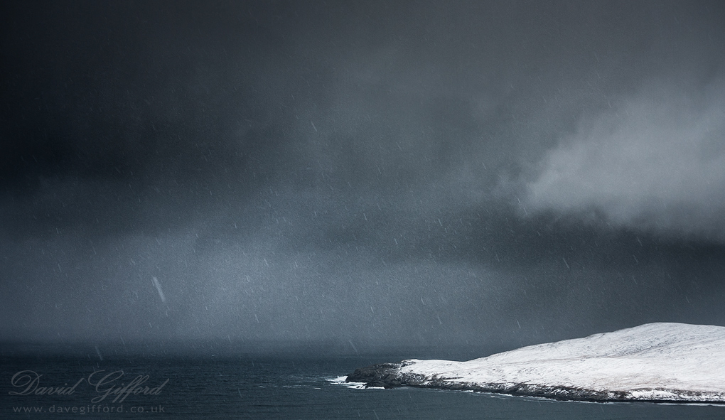 A spell of windy weather in Shetland; a walker, photographed this afternoon, gathering driftwood from the shore.
