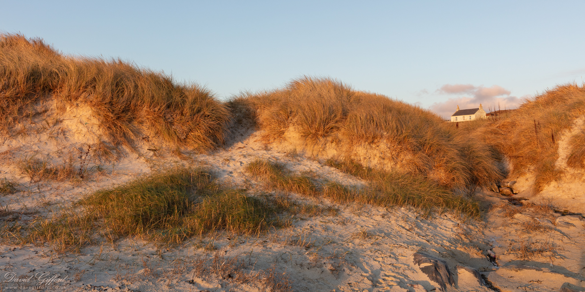 Dunes at the Meal Sand A low sun casting a golden light over a cottage and sand dunes at Meal in Burra.Posted: November 12th, 2019BeachLandscapeShetland♦Image #1003