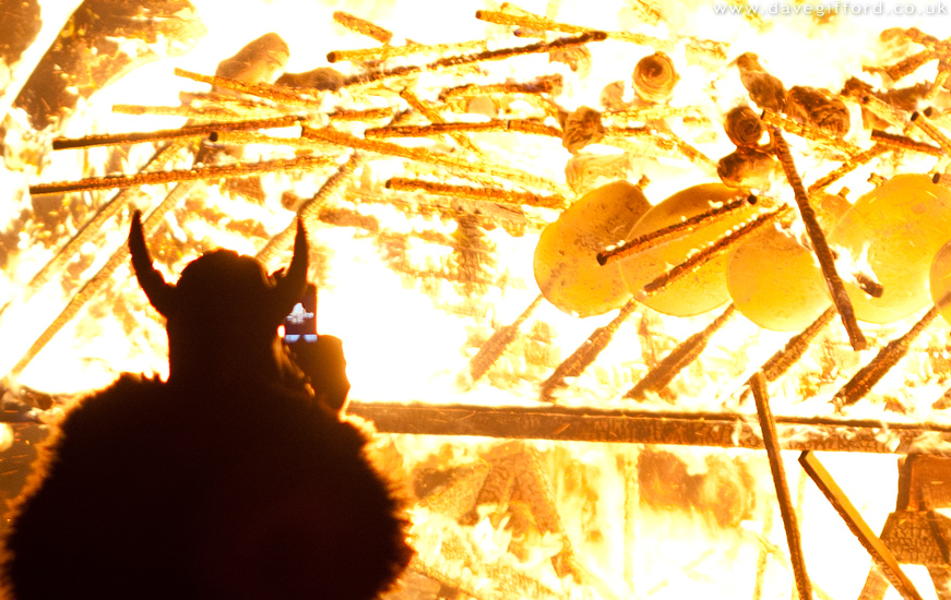 Fancy Headgear Silhouettes against the burning galley, with a range of headgear on display.Posted: January 29th, 2011PeopleShetlandUp Helly Aa♦Image #396