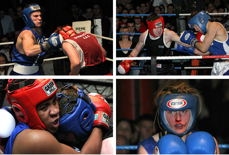 Last Thursday the Edinburgh University Student Union 'Potterow' was host to the Edinburgh University Amateur Boxing Club's Fight Night - a showdown between the uni and opponents from the University of Strathclyde and the Wallace & Lochee boxing clubs. I have to say I had a very enjoyable evening's entertainment. Every fight looked brutal and there was more than a little blood. Great stuff!