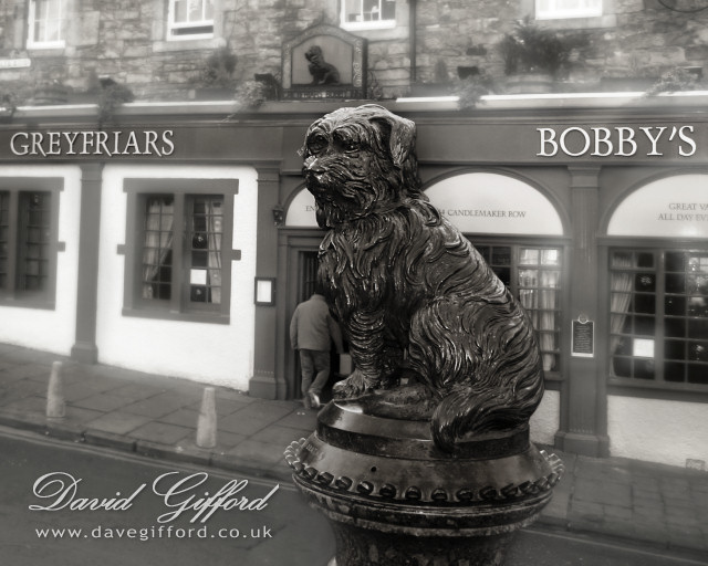 The statue is of a famous Sky Terrier called Bobby. His owner was a policeman who died in 1858 and was buried in the nearby Kirkyard. Bobby is said to have spent the next decade sitting on his master’s grave before being burried himself just inside the Kirkyard gate. The story has spread and been embellished by several books and films.