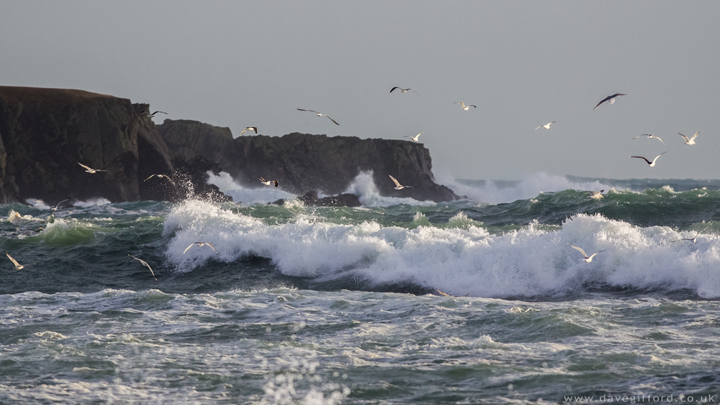 Gulls above the Waves A glimpse of sun catching a stormy sea as a flock of seagulls fly above the waves.Posted: March 7th, 2015BirdHerring GullLandscapeSeascapeShetlandStorm♦Image #697