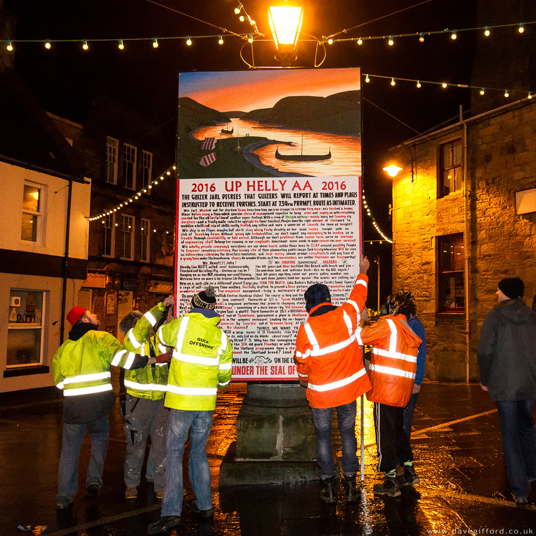 The first public ritual of Up Helly Aa day, as the Bill is carried to the Market Cross this morning.