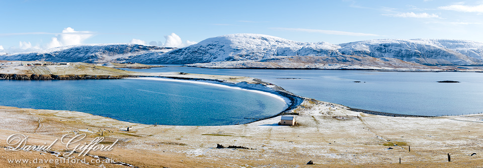Photographed here is one of the displays from the controversial ‘Mirrie Dancers’ arts project - the Duncansclate crofthouse in Burra illuminated at night with a variety of dynamic coloured lights.