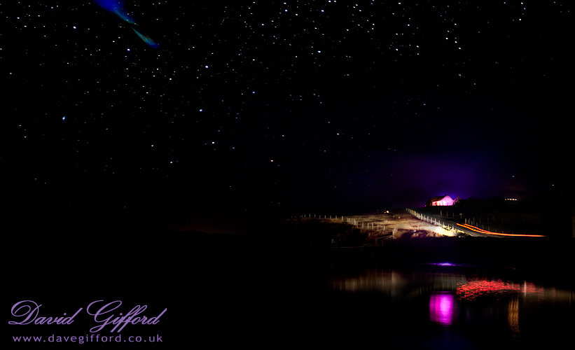 The ‘spiral galaxy’ in the top-left is actually lens flare, which I intentionally kept in the image. Incredibly, a singular meteor came within a few centimetres (measuring on the screen) from entering this very frame - alas! The lights from a passing car nicely lit the foreground.