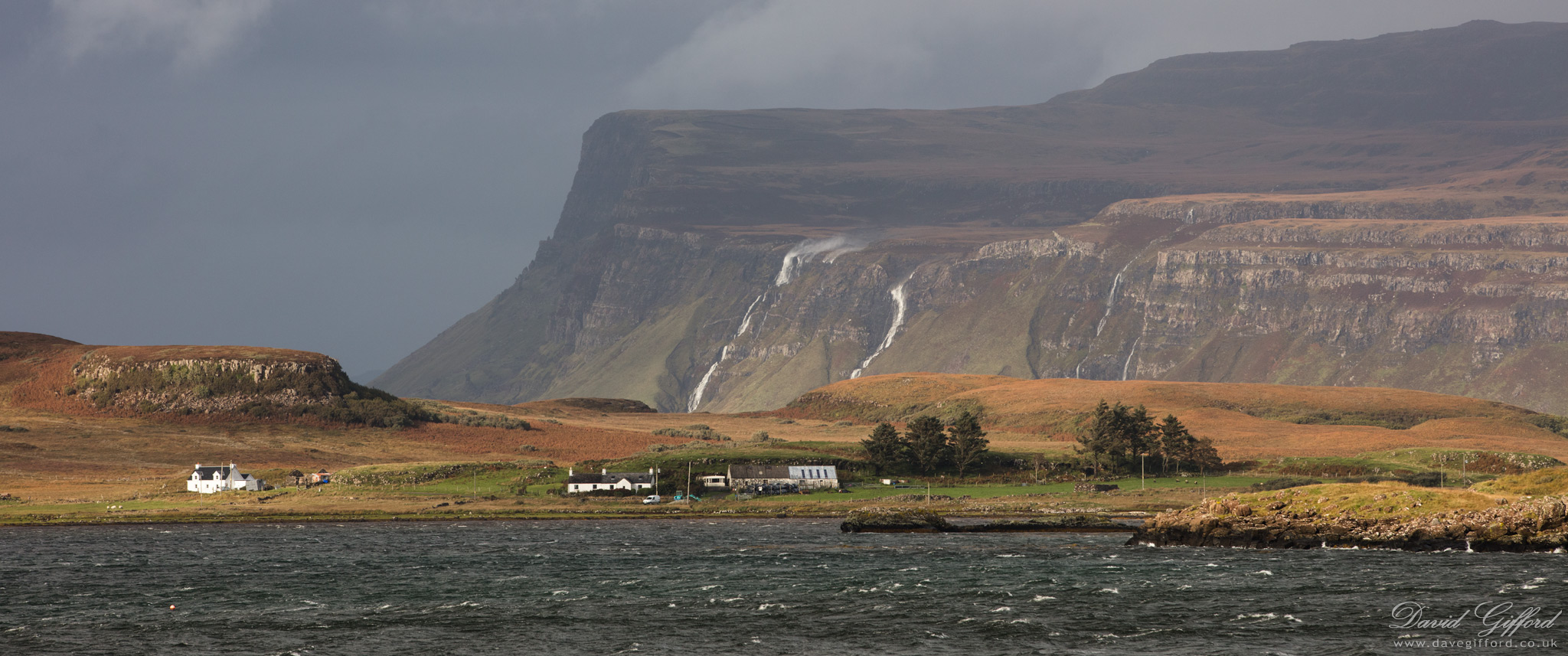 The view in this photo is of the hamlet of Eorabus, Bunessan, in the Ross of Mull, with the dramatic backdrop of the cliffs and waterfalls below Bearraich on the Ardmeanach Peninsula.