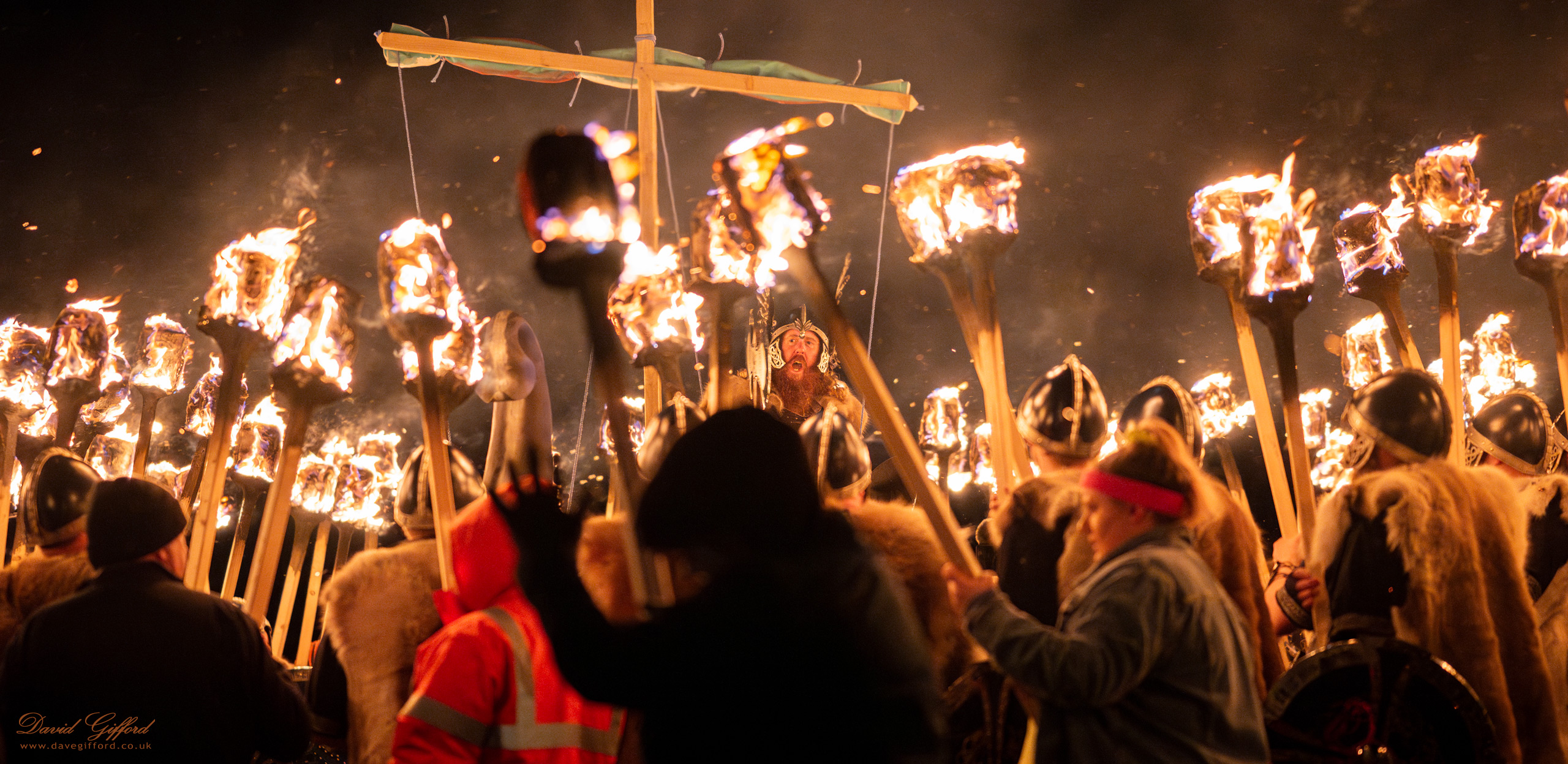 The Guizer Jarl atop his galley, surrounded by the gathering torchbearers from 19 squads.