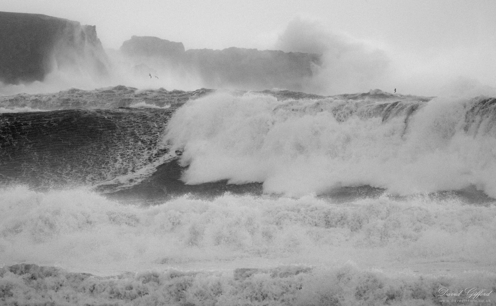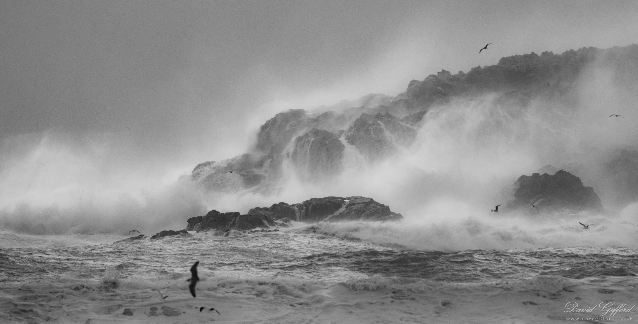 November Storm II The sun catching the spray from waves breaking on the headland.Posted: December 24th, 2022LandscapeMonochromeSeascapeShetlandStorm♦Image #1246