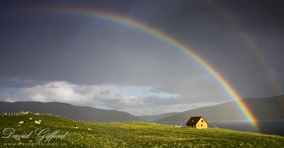 Another photo from my 'holiday in Shetland'. We had typical Shetland summer weather, ranging from perfect sunny days to cold & windy. We came across this double rainbow whilst driving through Olnafirth. Worth soaking my friend in the passenger seat to get the photo!