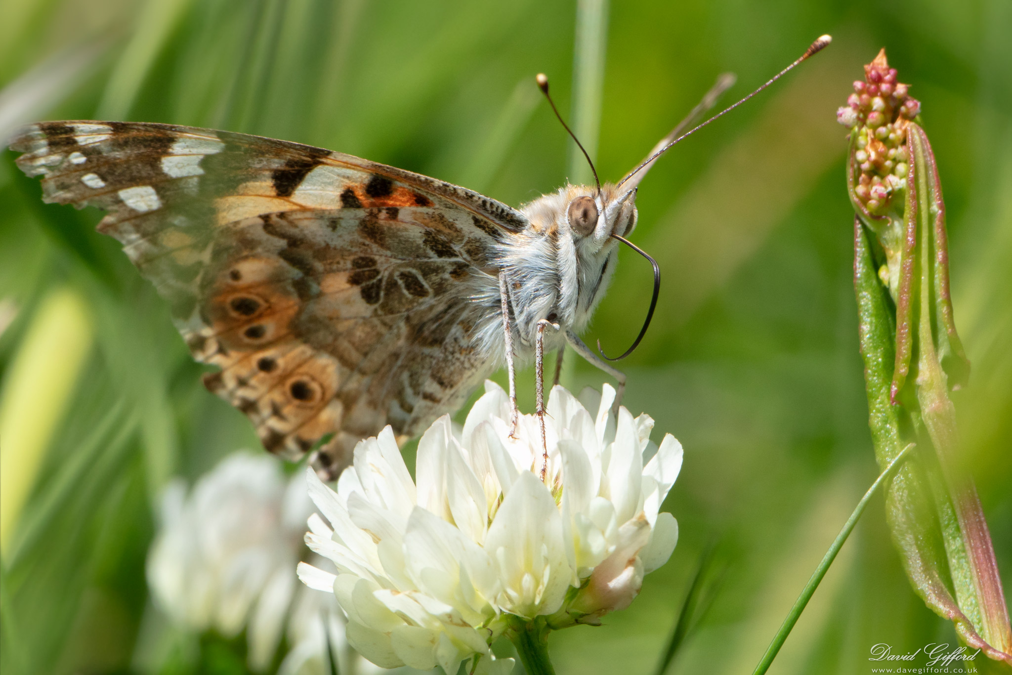 There was an unusually large number of butterflies in Shetland recently - especially Red Admiral and Painted Lady. This photo, taken this past week, is a close-up of a Painted Lady feeding on White Clover.