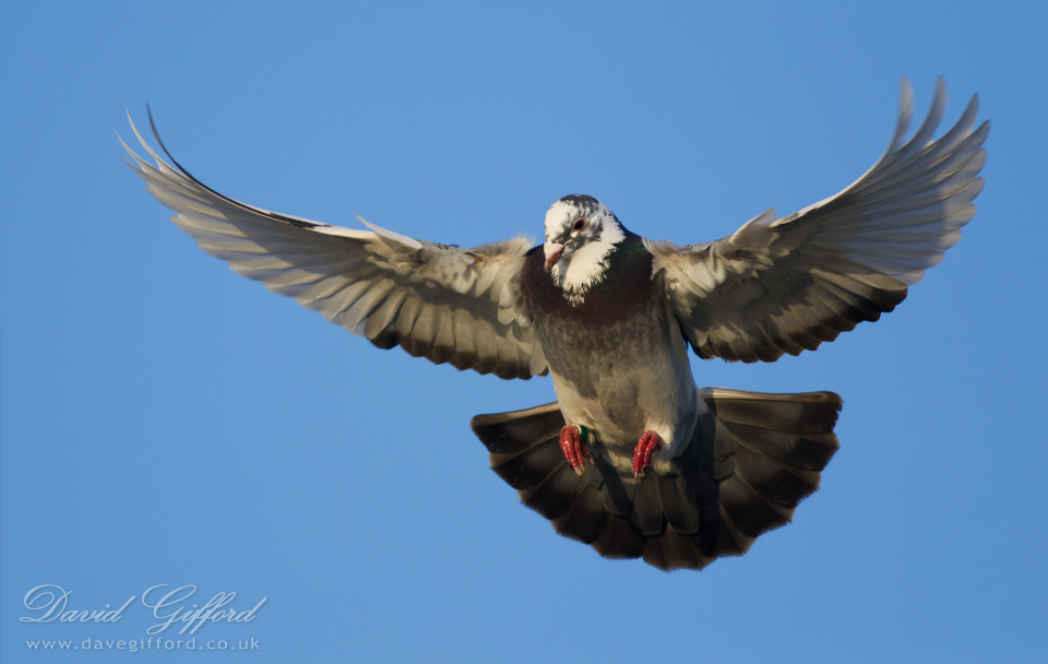 One of my father's racing pigeons - a yearling hen, enjoying the sunshine.