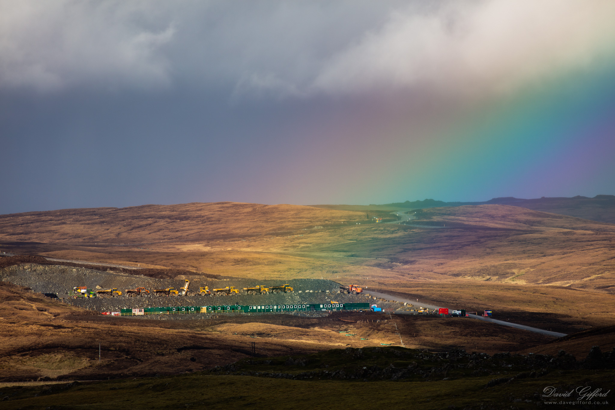 Pot of Gold? A rainbow over the Viking Energy wind farm construction compound southeast of Sandwater.Posted: June 9th, 2021LandscapeRainbowShetland♦Image #1142