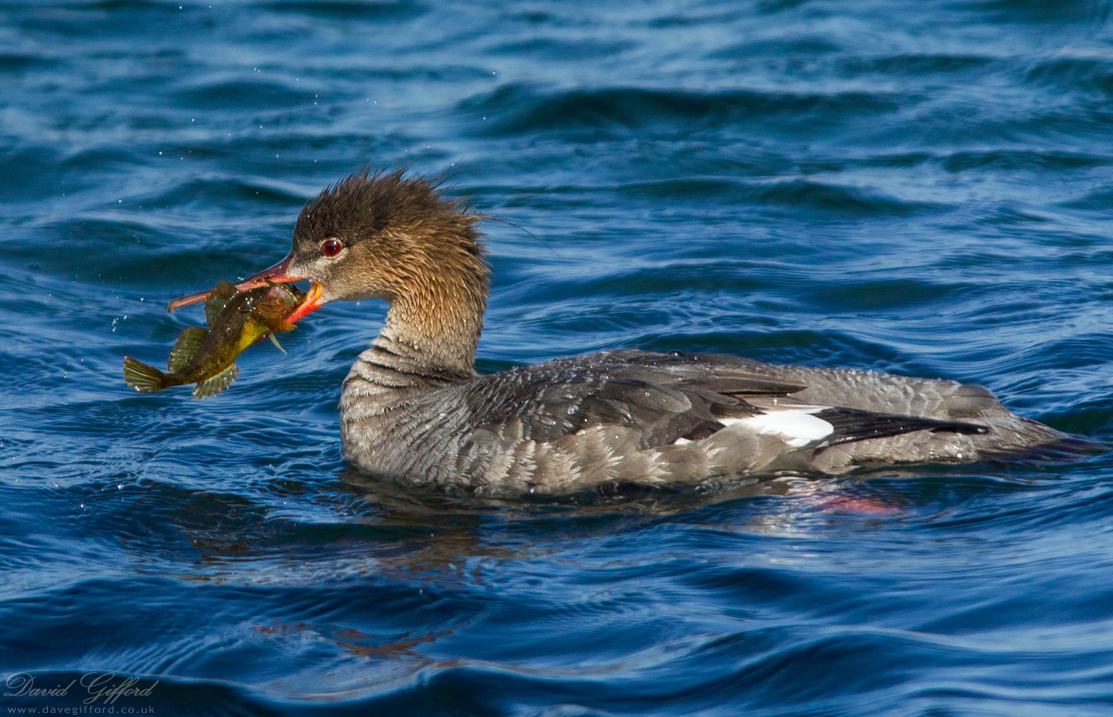A female Red-breasted Merganser catching a Plucker (Scorpion Fish), photographed earlier this year.