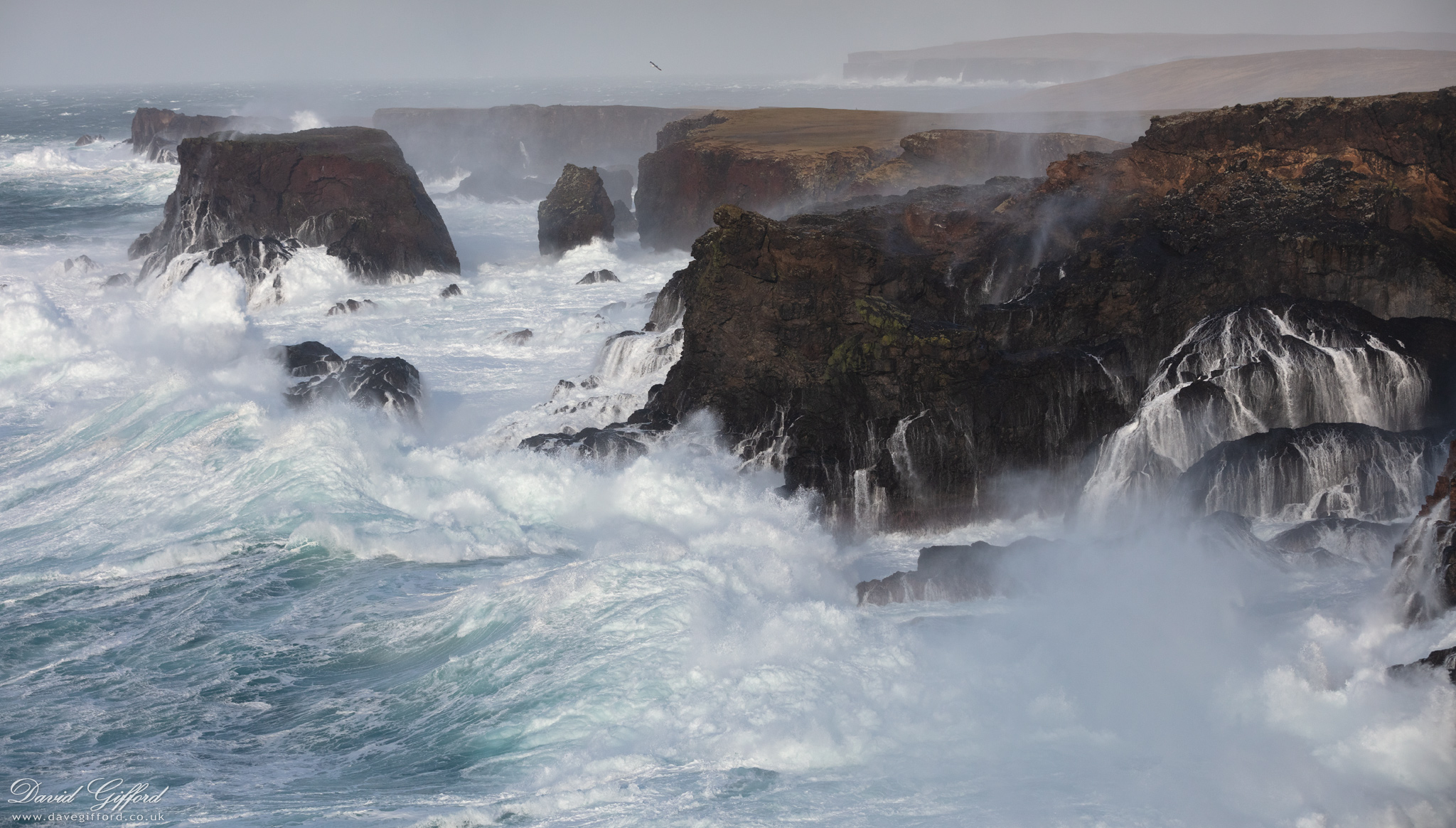 Sea Power A mist of spray as the sea breaks against rocks at Eshaness.Posted: February 24th, 2020BirdLandscapeSeascapeShetlandStormWave♦Image #1046