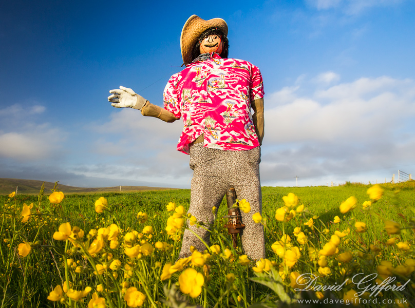 This cheery scarecrow waves to you as you drive through Trondra, dressed at the moment in summer garb. Tommy and Mary Isbister run the crofts at Burland in Trondra, and offer a croft trail experience for adults and children to see the workings of a traditional Setland croft.