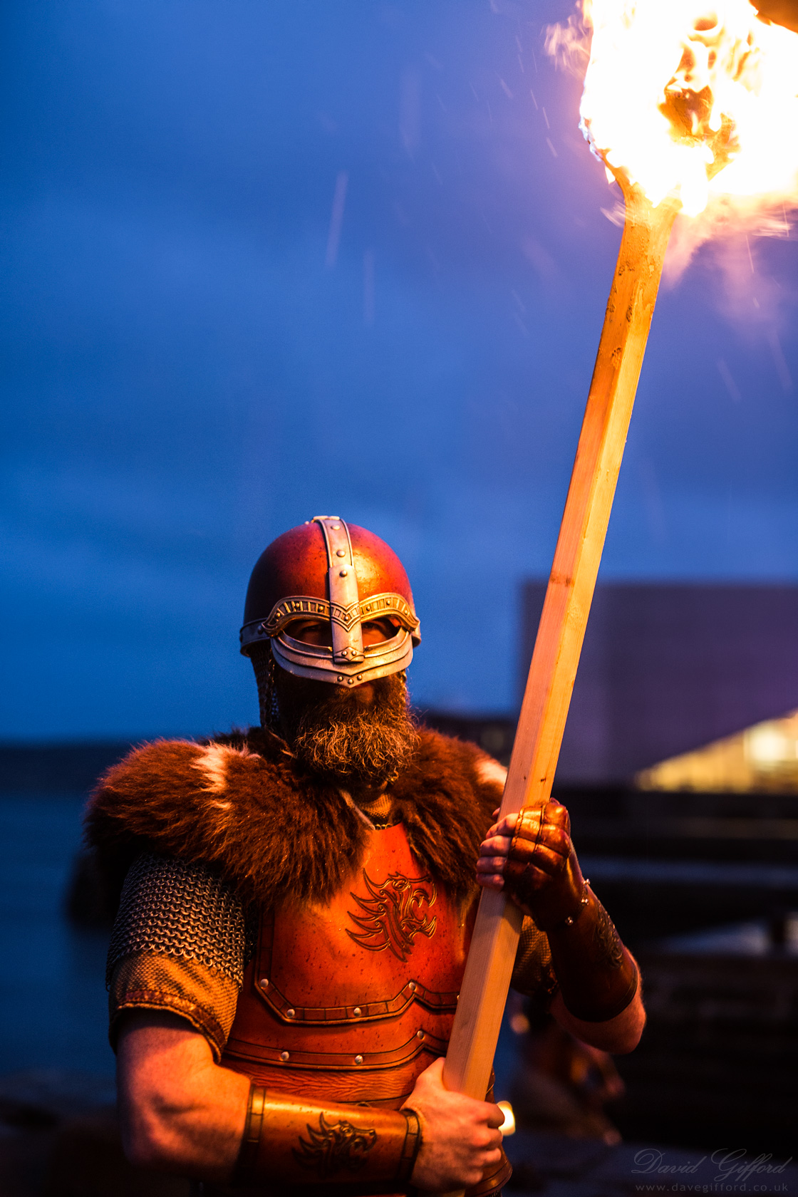 Torch Bearer A member of the Jarl Squad illuminated by burning torch, showing detail in the suit.Posted: January 31st, 2017PeopleShetlandUp Helly Aa♦Image #869