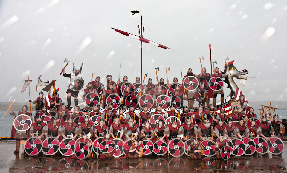 A wet start to this year's Up Helly Aa festivities, but that hasn't dampened spirits. I've only had the chance to have a very quick look over my photos from this morning; now trying to dry off the camera for tonight's torchlit procession!