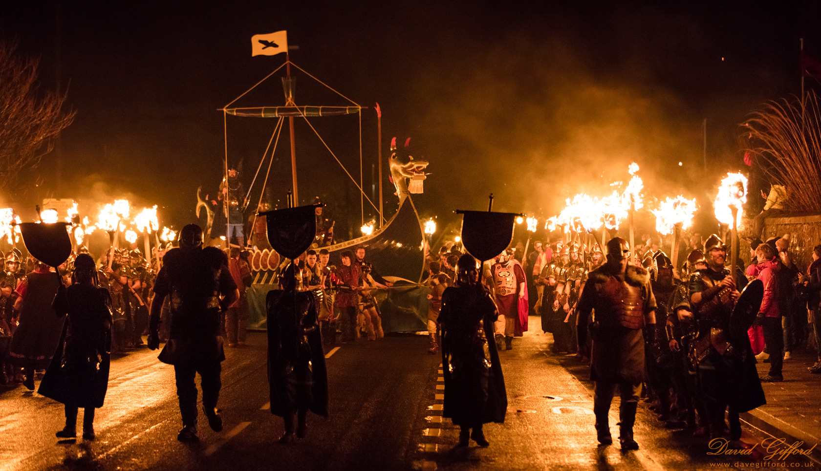 The Jarl Squad and Marshals leading the Galley and Guizers through the streets of Lerwick - an amazing spectacle.