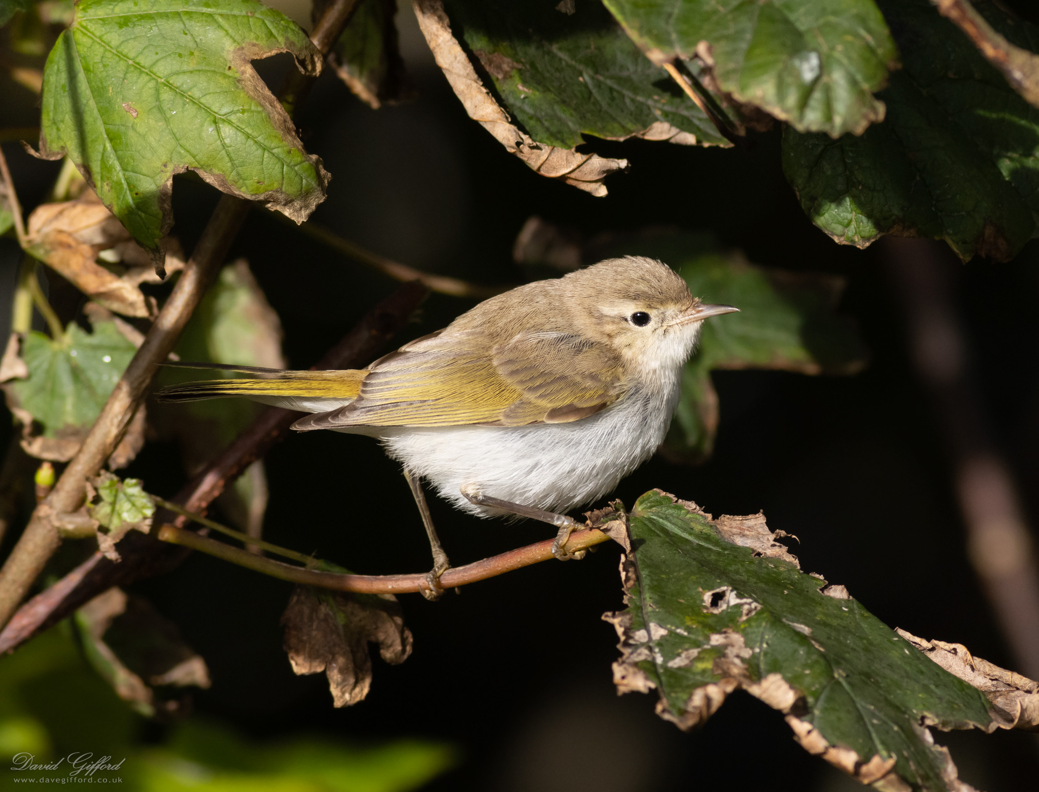 A Western Bonelli’s Warbler - a rare vagrant species in Shetland - finding lots of insects in the sun at Quendale, 18th September 2022.